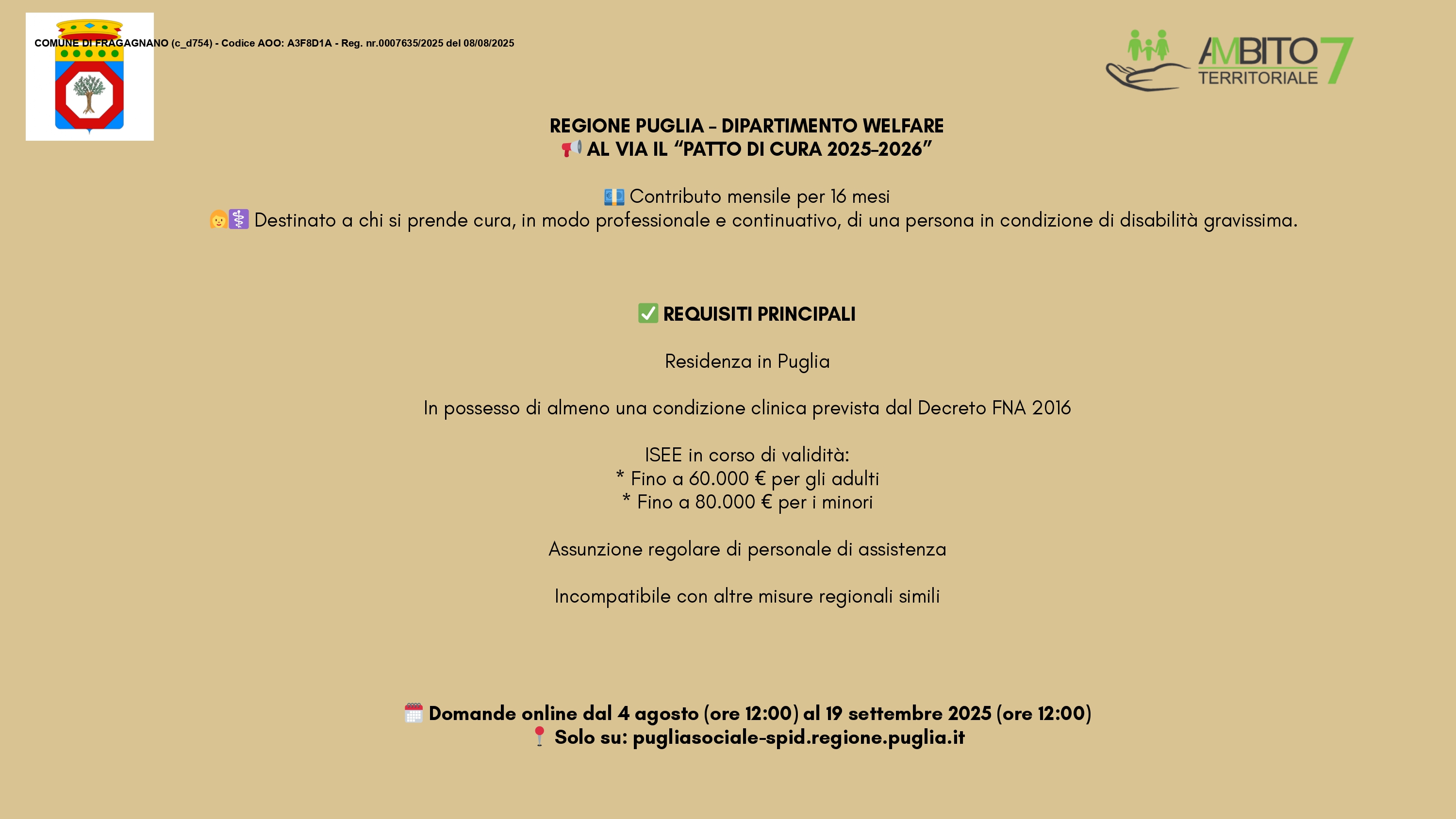 Misura “Patto di cura in favore di persone in condizione di gravissima disabilità e e non autosufficienza. Annualità 2025-2026